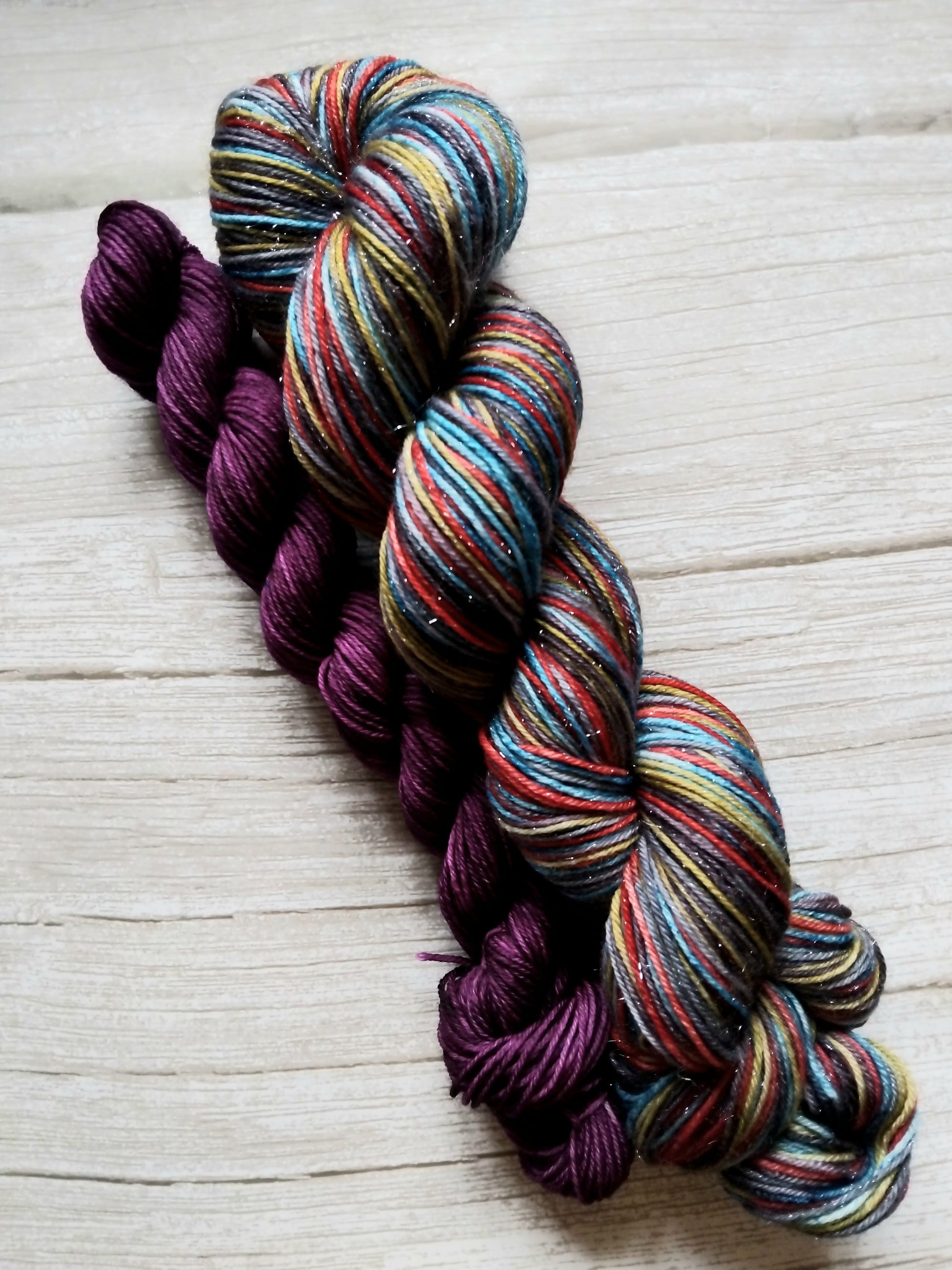 1 × 20g mini skein of hand dyed yarn.